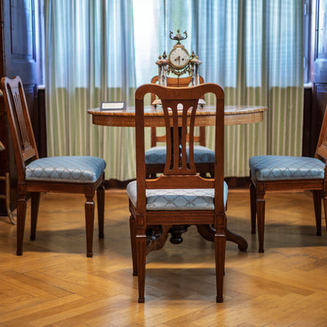 Nedílnou součástí mnoha historických kusů nábytku jsou skleněné výplně a vitráže. Dalším důležitým prvkem je čalounění židlí, sedacích souprav či pohovek. Spolupracujeme přitom s odborným uměleckým sklářem i čalouníkem.
